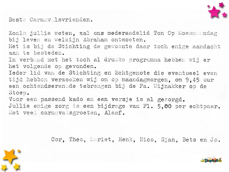 Tot slot bevat het archief uit dit jaar het indrukwekkende slotwoord van Frans van Boekel, die na jarenlange inzet afscheid nam als voorzitter van Stichting Carnaval De Moeslanden.