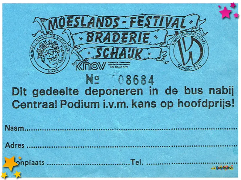 Het kaartje van de braderie waar je prijzen mee kon winnen.