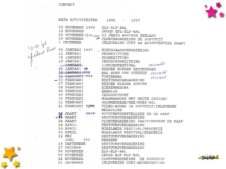 Een concept jaarplanning voor Stichting Carnaval de Moeslanden.