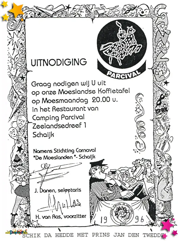 De uitnodiging voor de jaarlijkse koffietafel bij Parcival in Schaijk.