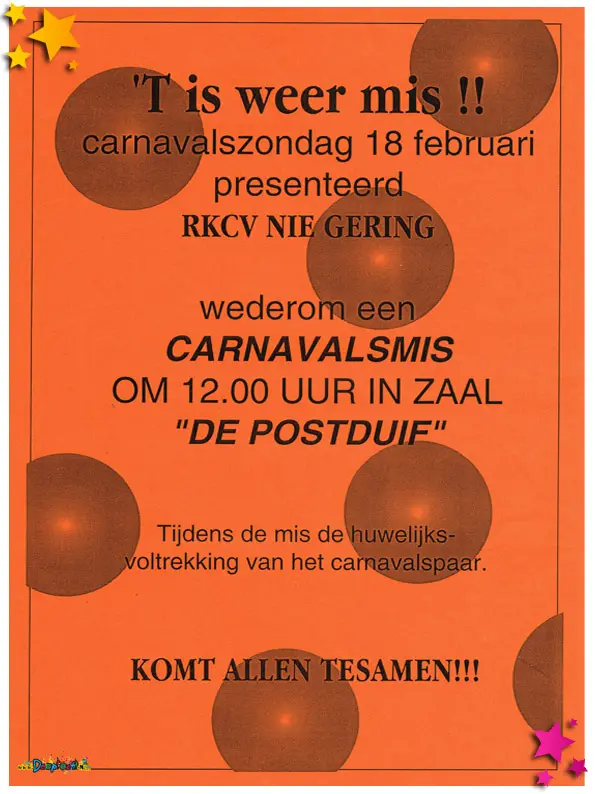 De officiële uitnodiging voor de ochtendmis van R.K.C.V. Nie Gering
