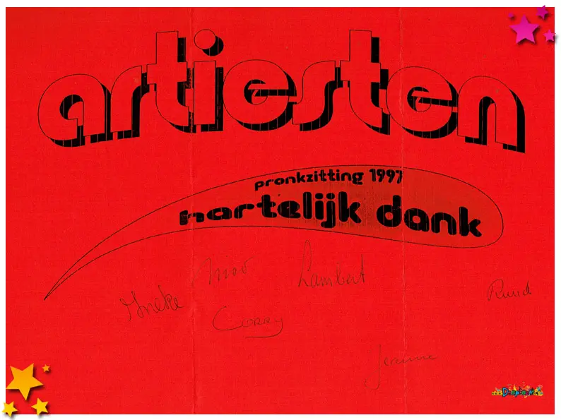 Een bedankje voor de artiesten en deelnemers aan de pronkzitting van 1997.