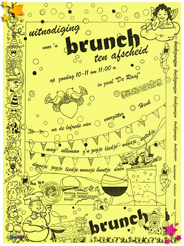 De officiële uitnodiging voor de brunch van Stichting Carnaval de Moeslanden.