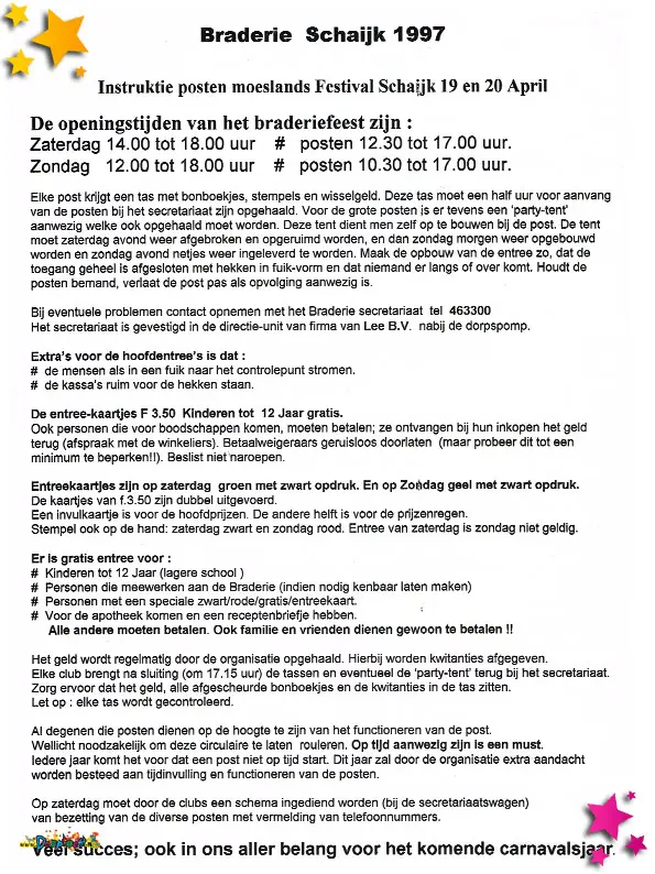 Taakverdeling Braderie 1997