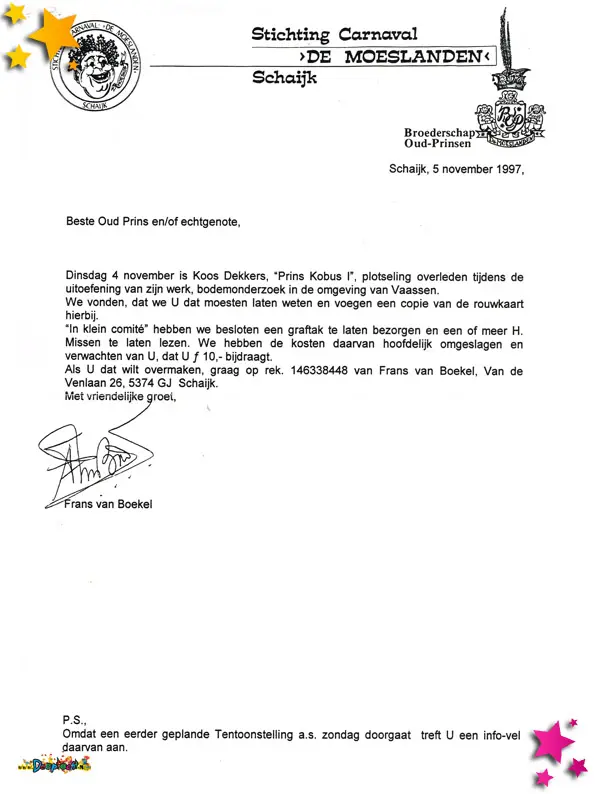 Dit is een brief n.a.v. het overlijden van Koos Dekkers.