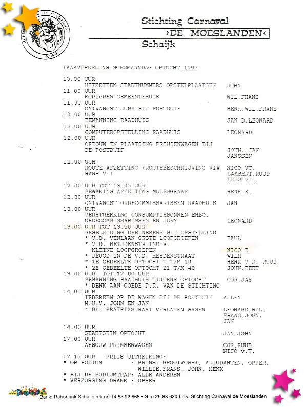 Taakverdeling optocht 1997