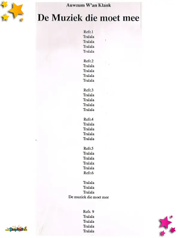 Onbekend van wie dit lied is. Mocht jij het wel weten…mail het dan door naar info@deoptocht.nl.