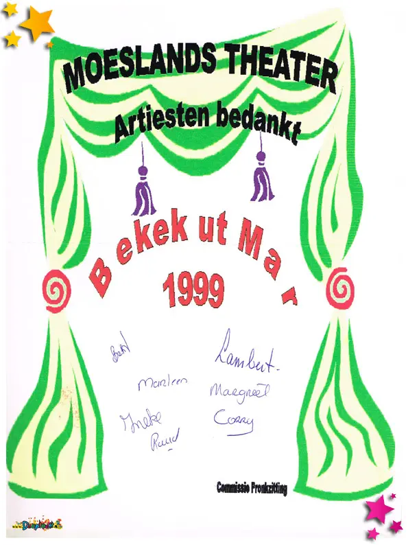 Een bedankje voor de artiesten en deelnemers aan de pronkzitting van 1999.