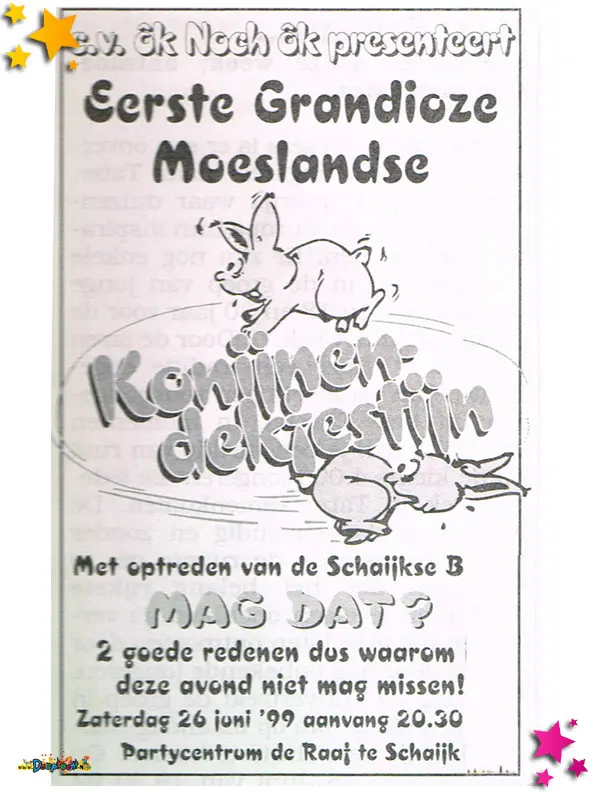 Carnavalsvereniging Ôk Noch Ôk organiseerde in 1999 het eerste Moeslandse konijndekfestijn.