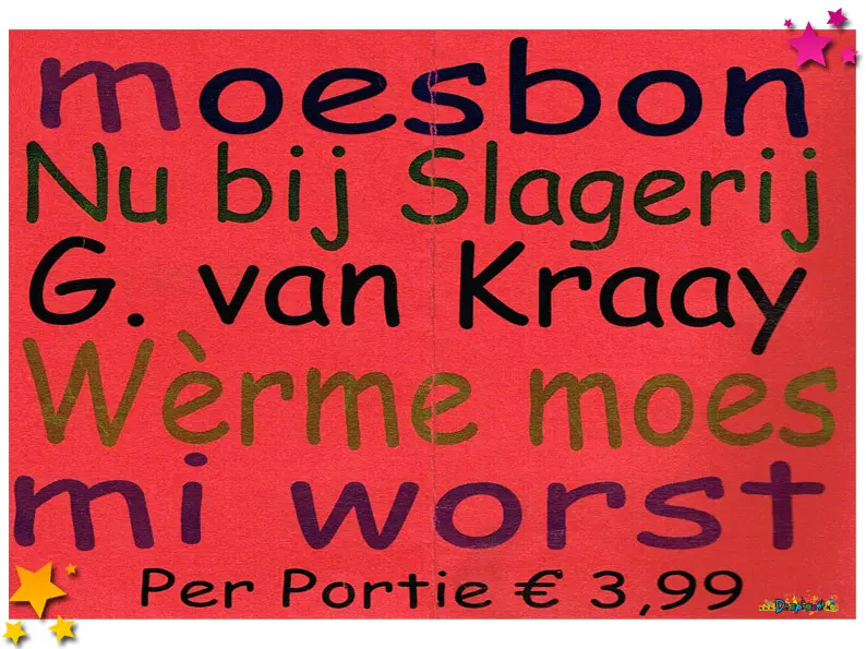 Bij slagerij Gerrit van Kraay kon tijdens de carnaval lekkere boerenmoes gehaald worden. Uiteraard met worst!