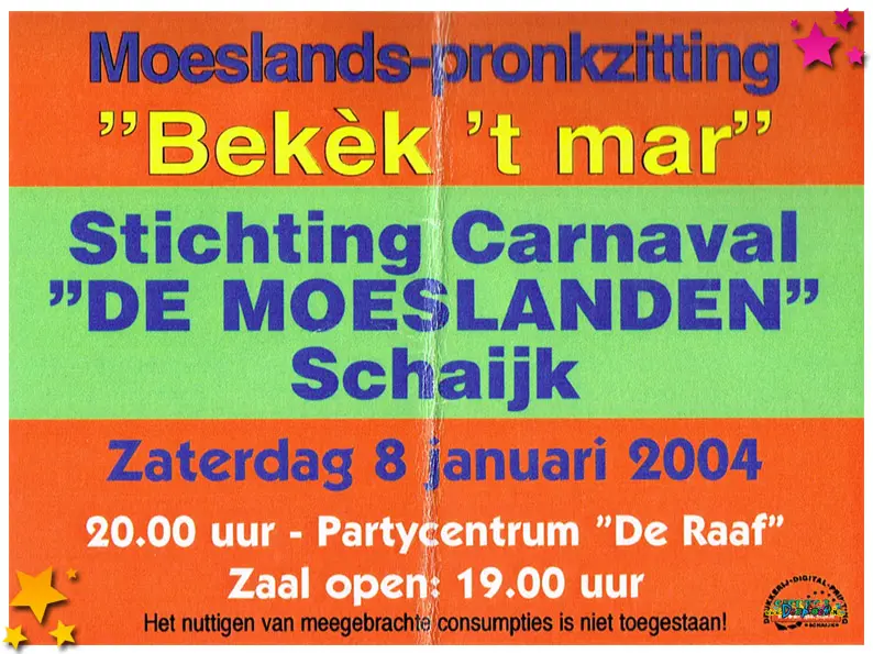 2005 was een jaar waarin het Moesland opnieuw bewees dat carnaval niet alleen vóór het publiek is, maar óók mét het publiek wordt gevierd. En waar één club het publiek aan het werk zette, vierde een andere drieëndertig jaar historie met muziek en een blijvend eerbetoon.