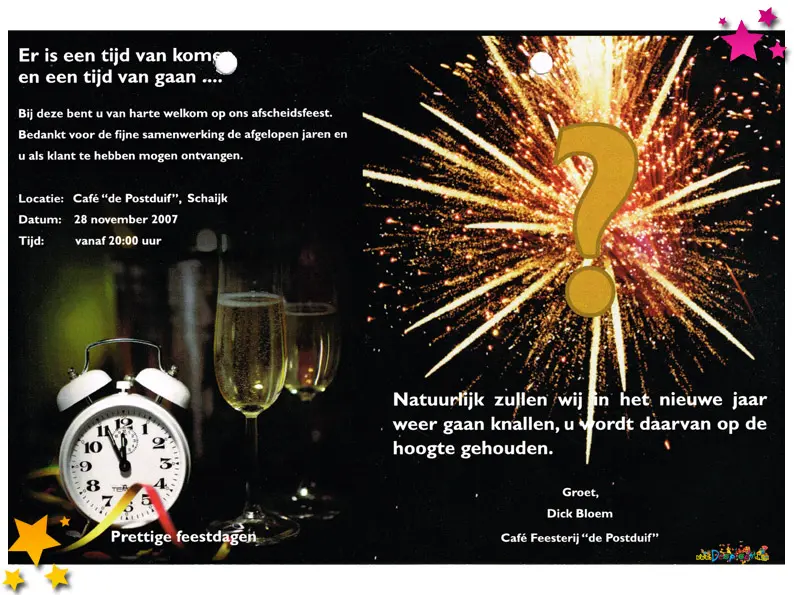 Frank de Vent en Stefan van Ras deden in 2007 mee aan de pronkzitting als ‘Showorkest Nep’. Voor de echte fans was er een kaartje met persoonlijke boodschap.