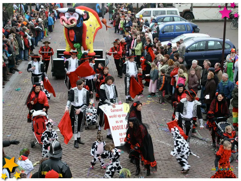 De volgorde van de optocht staat op een flyer die wordt uitgedeeld voorafgaand aan de optocht.