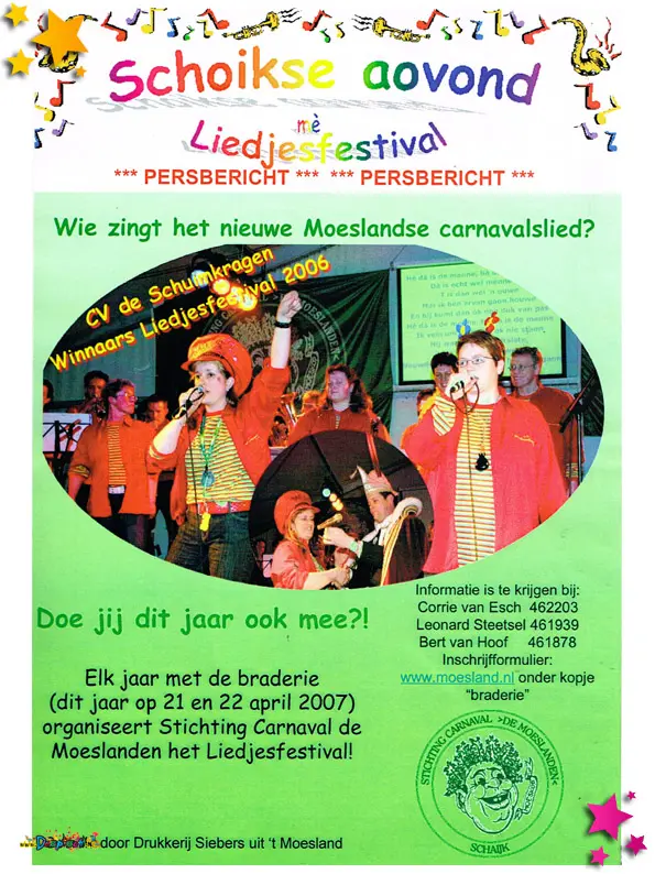 Het inschrijfformulier voor het Moeslands Liedjesfestival 2007.