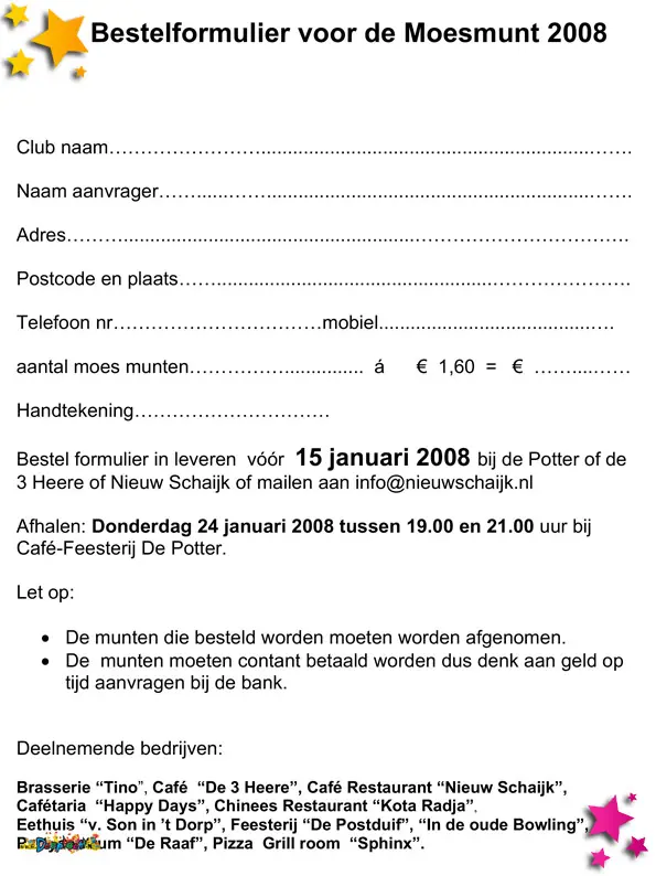 Het bestelformulier van de Moesmunt uit 2008.