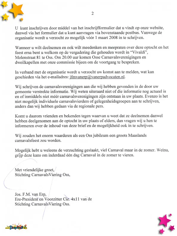 Stichting Carnaval de Moeslanden kreeg een uitnodiging voor de historische optocht van de Ossekoppen i.v.m. hun 44-jarig bestaan.