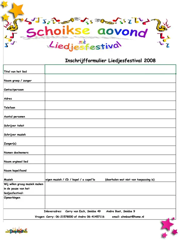 Inschrijfformulier liedjesfestival