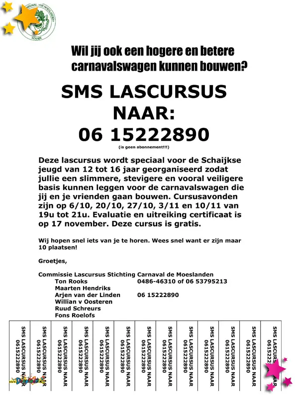 Om de jeugd veiliger wagens te laten maken organiseert Jeugdcarnaval Schaijk al vele jaren de lascursus. Om de lascursus te kunnen geven heb je wel deelnemers nodig. In 2008 werden ze o.a. op deze manier gevraagd om deel te nemen.