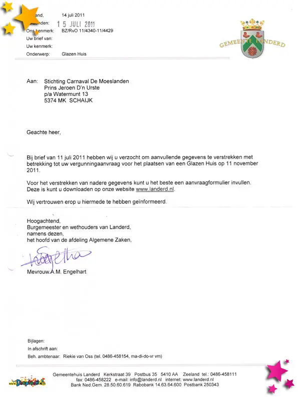 Officiële uitnodiging voor de nieuwjaarsbijeenkomst van de gemeente Landerd.