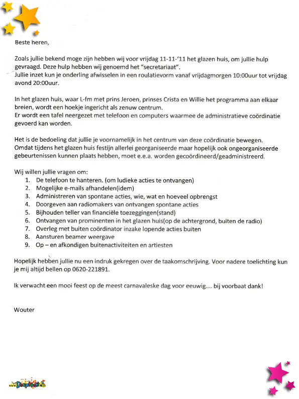 Taakomschrijving secretariaat voor het Glazen Huis.