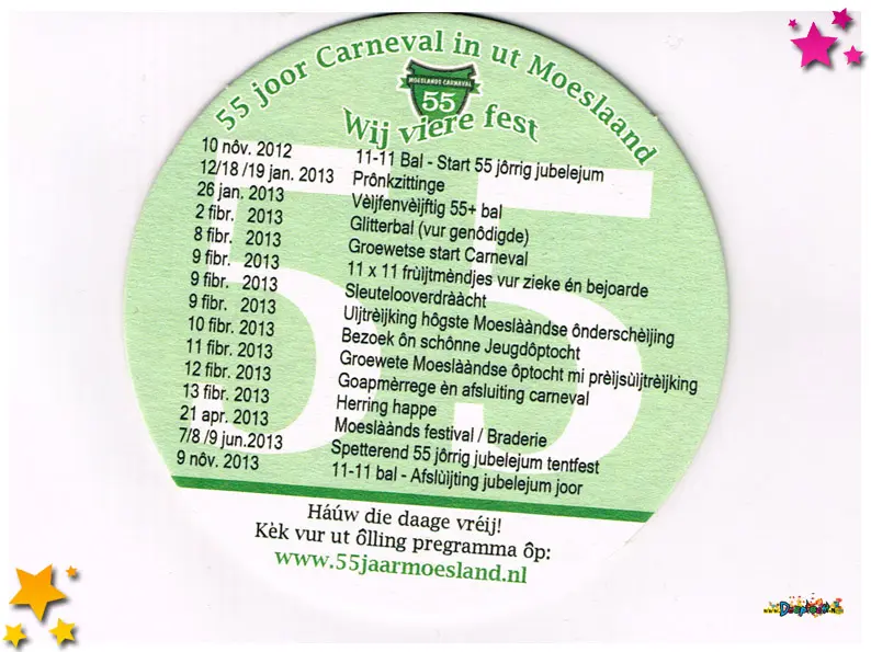 Het bierviltje (met programma) wat al tijden voor aanvang van het 55-jaar feest in omloop was.