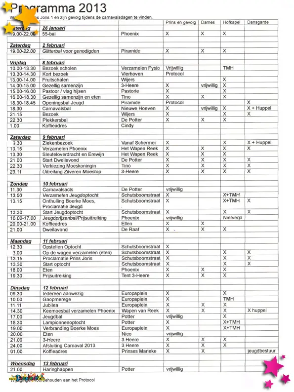 De indeling van de commissies voor carnavalsseizoen 2013-2014.