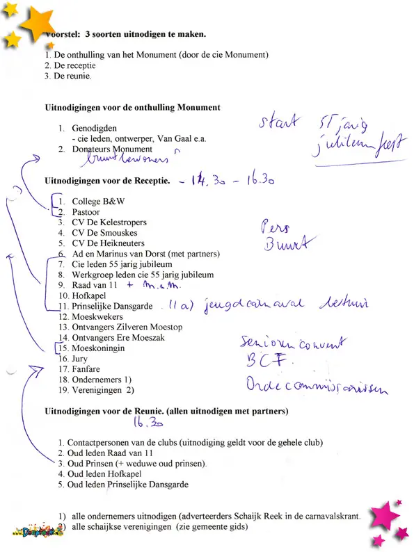 Als je een jubileum viert, dan hoort daar o.a. een receptie bij. Maar wie ga je allemaal voor welk onderdeel uitnodigen?