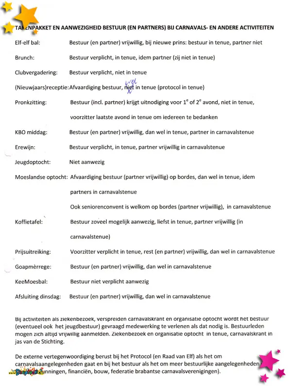 Het takenpakket van het bestuur van Stichting Carnaval de Moeslanden.