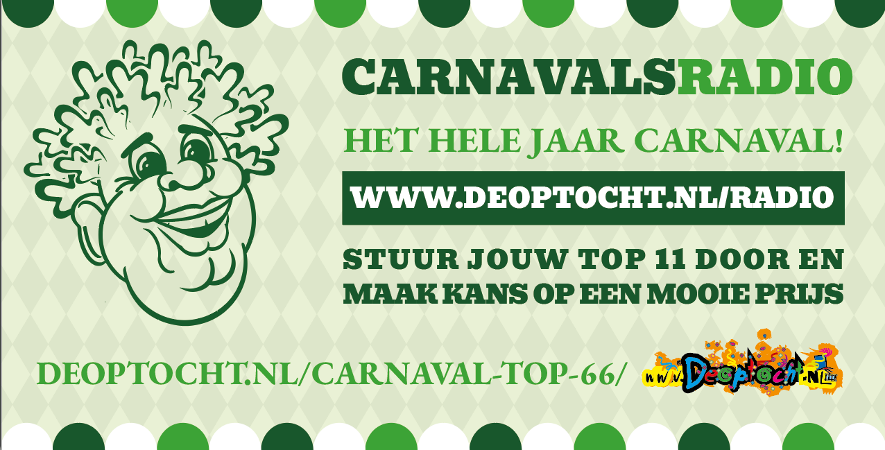 Pak je telefoon, open je laptop of start je favoriete app. Het feest begint nu. Luister mee, zing mee, en maak van elke dag een carnavalsdag met deoptocht.nl carnavalsradio!