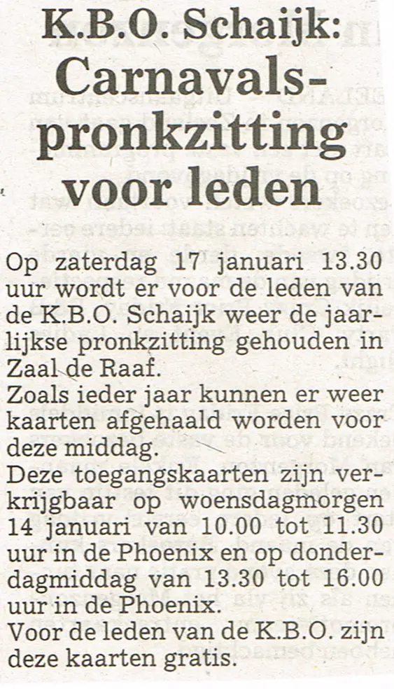 Frans Albers verscheen in de ton als het Blij Boerke, speciaal van zijn sokkel gehaald om op rijm zijn zorgen te uiten over het verdwijnen van het gemeentehuis uit Schaijk. De kritische noot werd op luchtige wijze verpakt, precies zoals een goede buut bedoeld is.