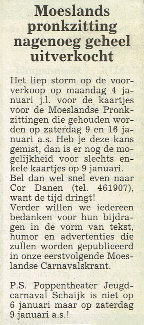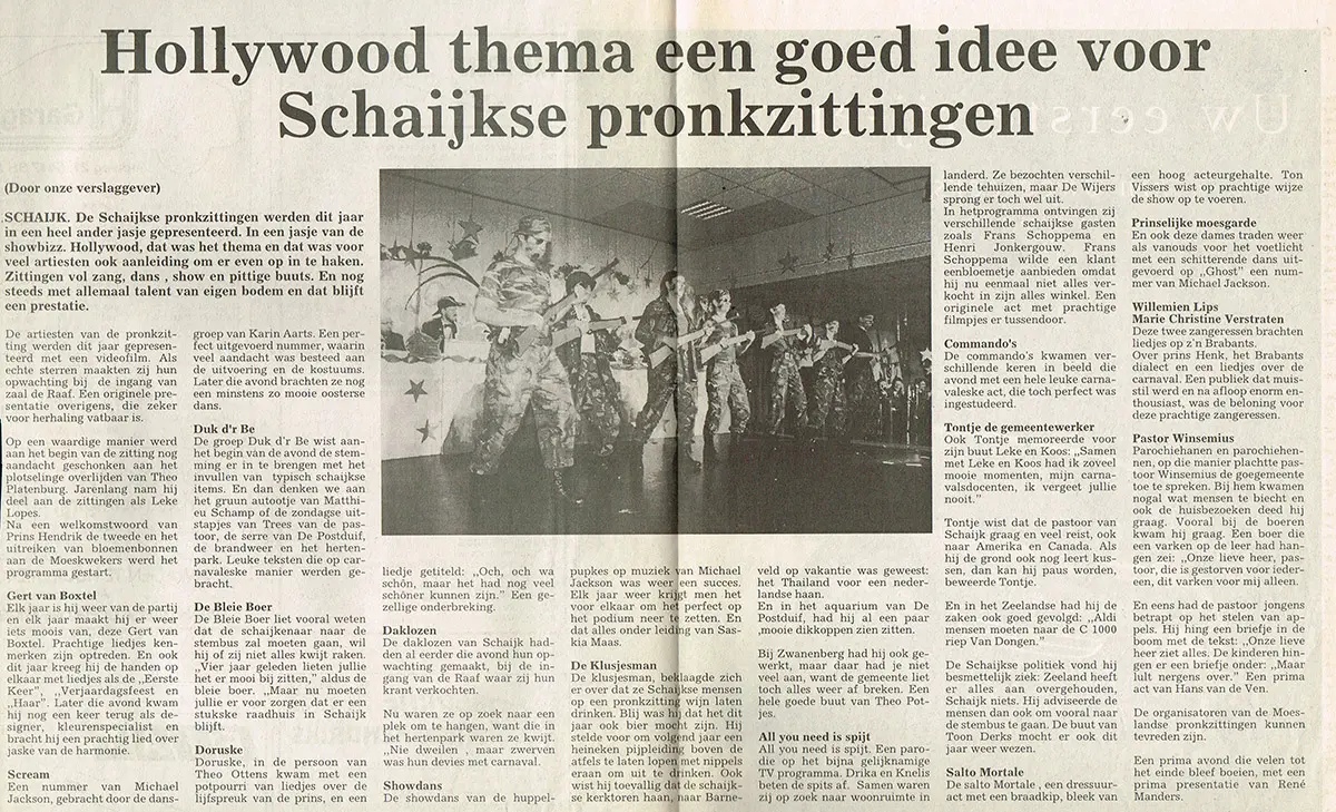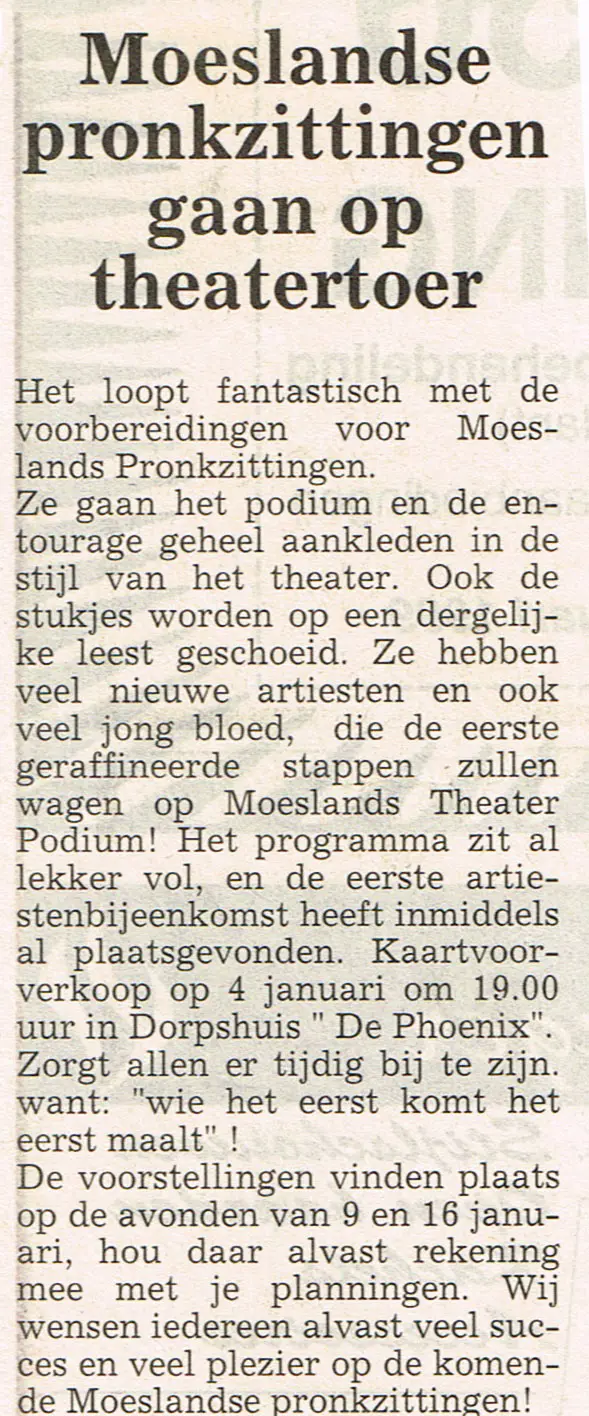 Pronkzitting 1998 was een avond vol fantasie, scherpe observaties en veel humor – een waardige opmaat naar carnaval, waarbij Moesland zich weer van zijn meest creatieve kant liet zien.