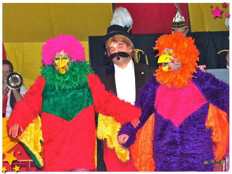 Zelfs dieren maakten hun opwachting: Henry Koekoek uit België arriveerde met zeven (of toch minder?) zilveren zotte Vlaamse gaaikes, een act die menigeen deed glimlachen.