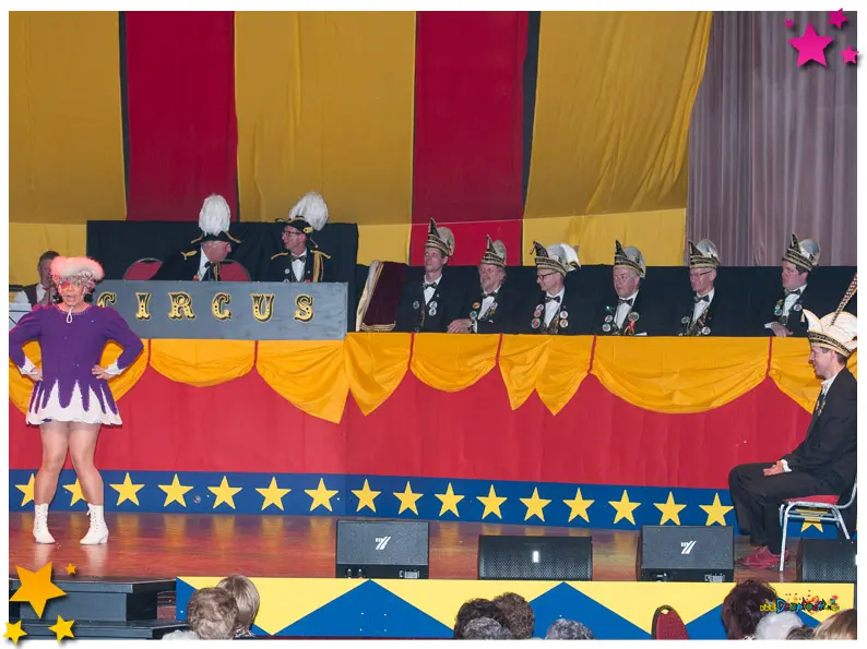 Tijdens pronkzitting 2012 werd het hooggeëerde publiek getrakteerd op maar liefst vier circusvoorstellingen waarin de optredens elkaar in hoog tempo opvolgden. Met acts van zowel vertrouwde gezichten als verrassende nieuwkomers werd het een avondvullend programma van ruim vier uur dat geen moment verveelde. Na afloop barstte in de foyer een gezellige afterparty los, die tot in de late uurtjes doorging.