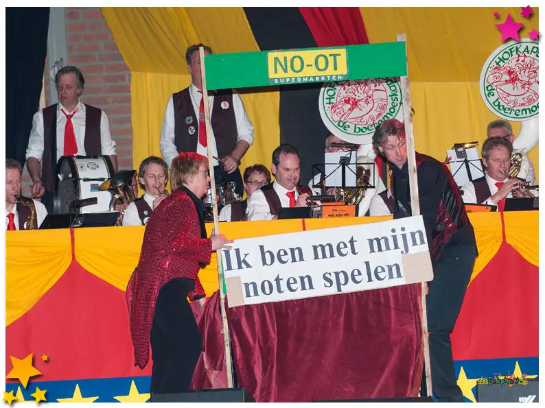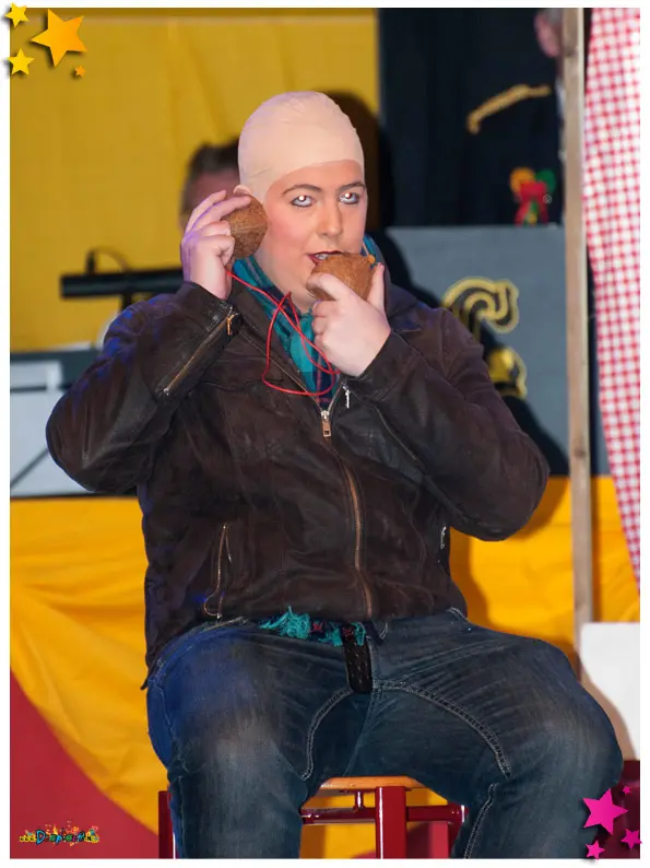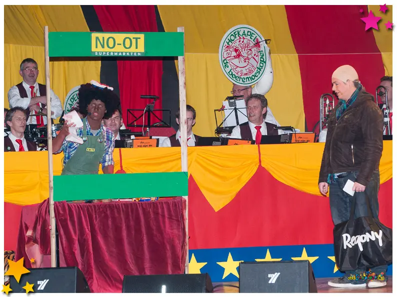 Vaste waarden als Gert van Boxtel, Theo Potjes (alias Theejke de postbode), Maarten en Jan van der Linden, Roel van Schaijk en Twan van Zandvoort stelden ook dit jaar niet teleur. Hun clowneske act “Op = op” zorgde voor herkenbare humor en veel gelach. Ook Stefan van Ras, ditmaal als Romana die verlangde een Huppelpupke te zijn, bracht een hilarisch optreden dat het publiek in vervoering bracht.