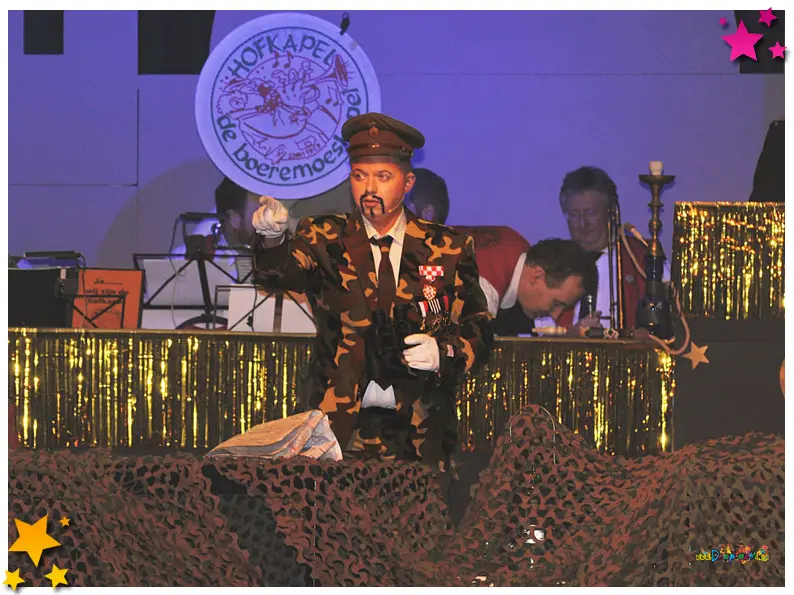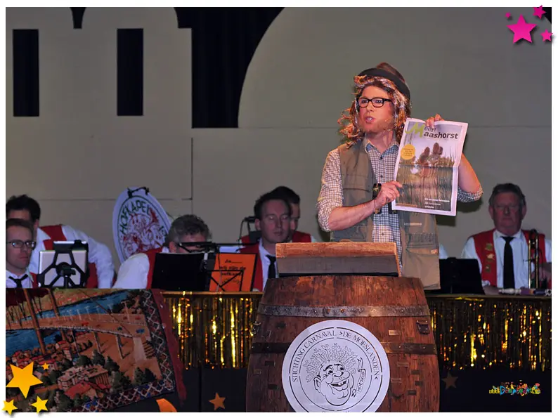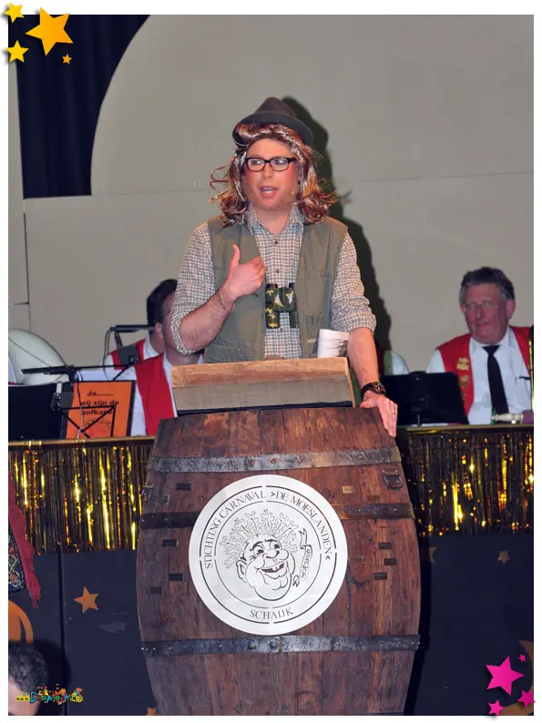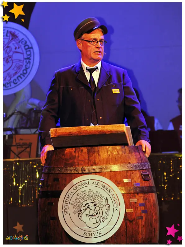 Naast de hilarische optredens was er ook ruimte voor ontroering en waardering. Jan van Ballegooij werd op de zaterdagavond geëerd voor zijn 22 jaar trouwe dienst als hoffotograaf. De huldiging kwam onverwacht voor Jan, die zichtbaar sprakeloos de loftuitingen in ontvangst nam. En ook Jeroen van Zuijlen werd in het zonnetje gezet. Al elf keer stond hij op het podium van de pronkzitting, hij speelt in de Hofkapel én maakt deel uit van de organisatie. Zijn inzet werd beloond met een zilveren plaatje op de ton – een eervolle onderscheiding die hem symbolisch vereeuwigde in de Moeslandse tonpraathistorie. “Jij bént de pronkzitting,” sprak voorzitter Roy van Boekel, en daarmee vatte hij het sentiment van de hele zaal perfect samen.