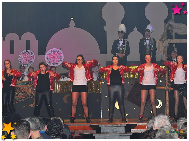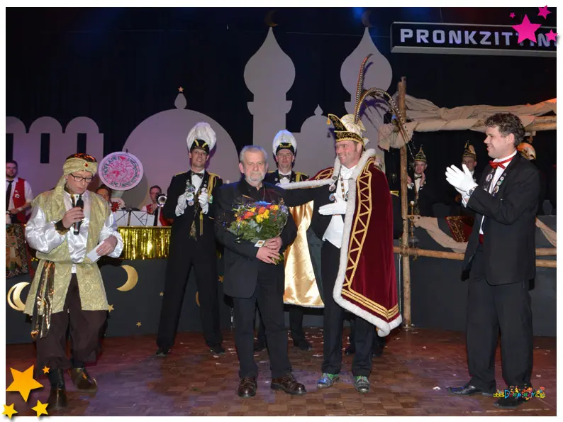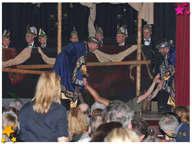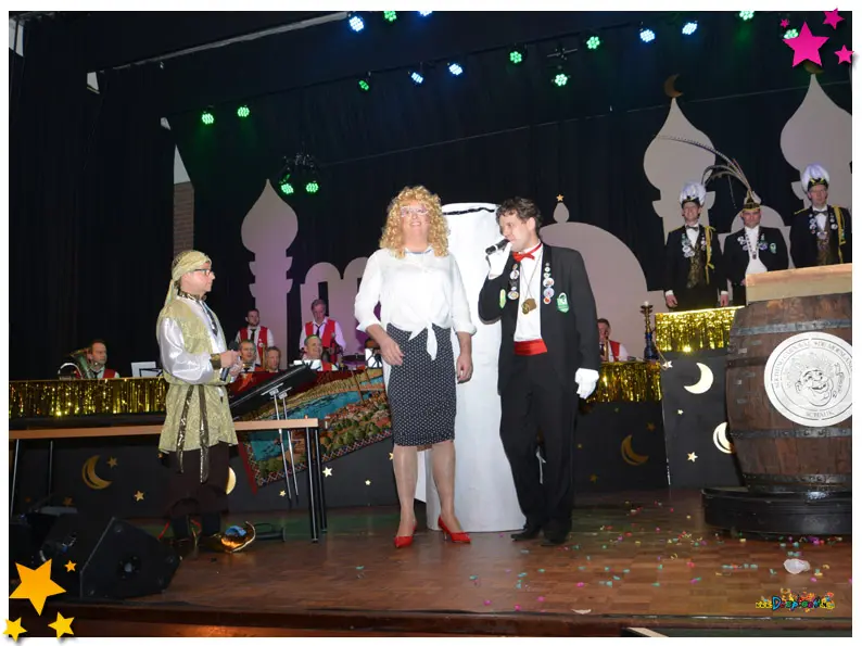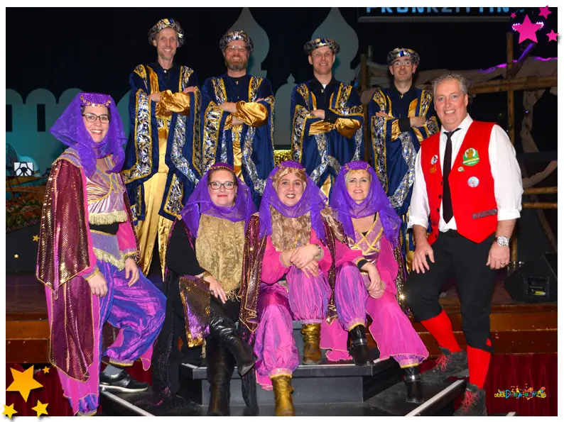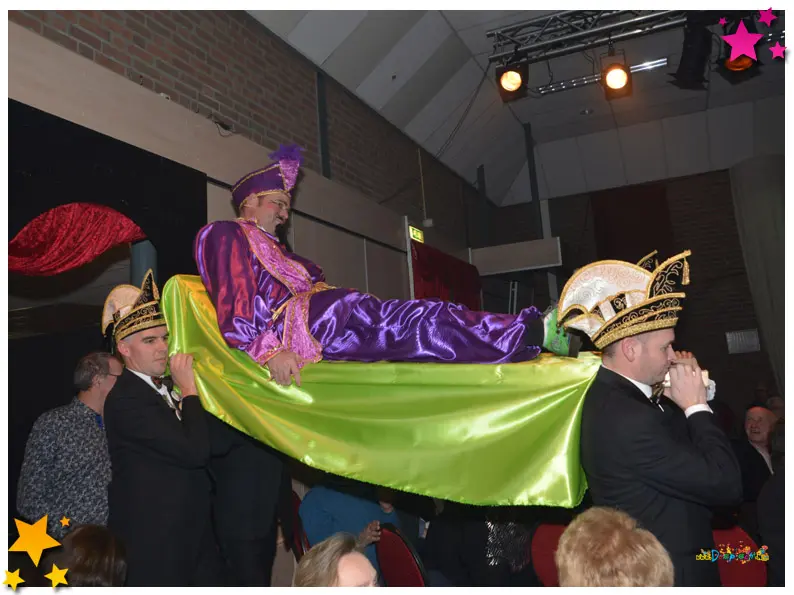 Pronkzitting 2017 in het Moesland stond bol van verrassingen, scherpe grappen en een snufje sprookjesmagie. Het decor, geheel in de stijl van Duizend-en-een-nacht, gaf direct de toon aan voor een avond vol fantasie en humor. Grootvorst Maarten opende als fakir op een vliegend tapijt en zette daarmee de toon voor een bonte avond waarbij alles mogelijk leek , van vliegende tapijten tot dronken afscheidsmissen.