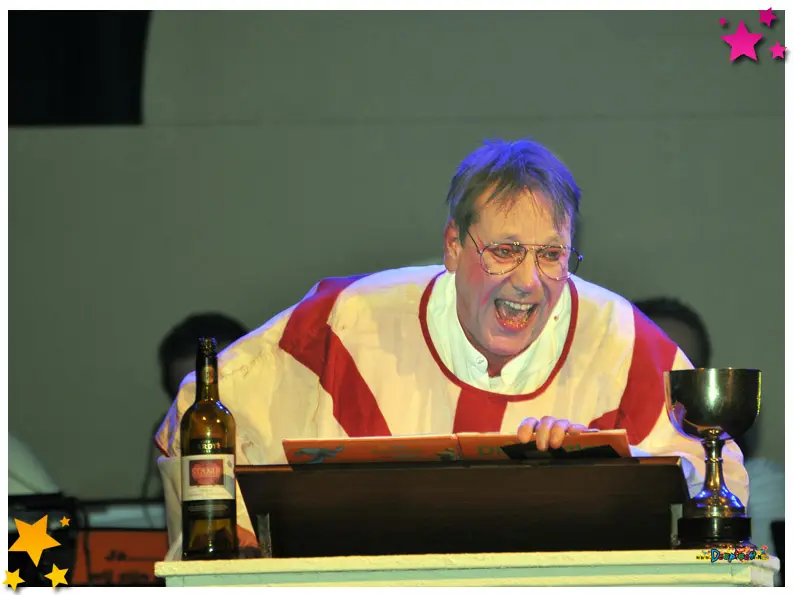 Ook Daan, bekend van zijn alter ego de Geweerde Marinus, nam op eigen wijze afscheid van die rol. In een geniale act vol gestruikel, gebrabbel en zuipgeluiden bracht hij een ‘afscheidsmis’ die allesbehalve plechtig was. Zijn ‘dronkenmanspreek’ zorgde voor uitbundig gelach en bewees dat een afscheid ook gewoon een feest kan zijn.