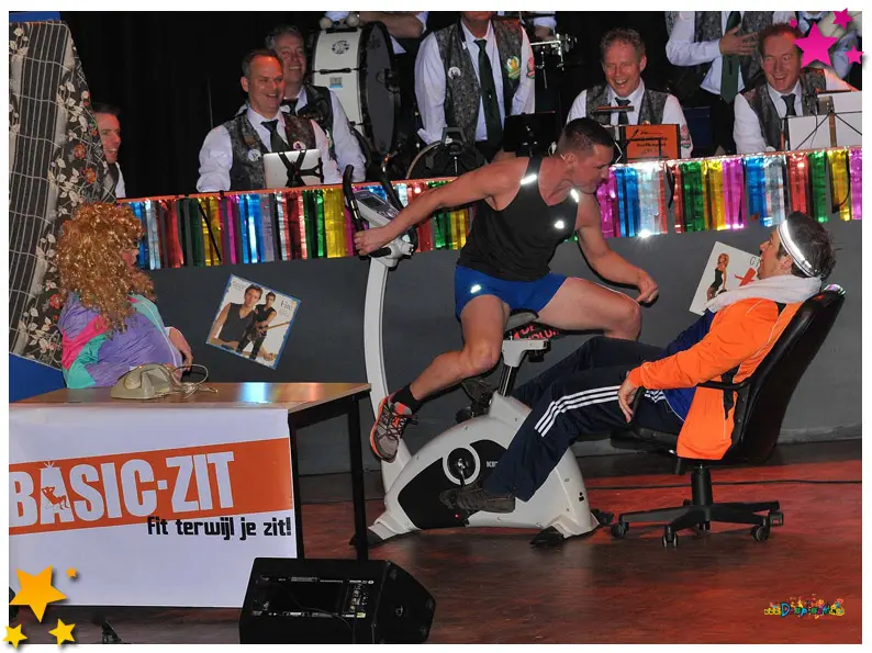 Een van de meest hilarische acts was zonder twijfel ‘Zitten is het nieuwe roken’, een vlijmscherpe parodie op de hedendaagse fitness- en leefstijlgekte. Het publiek herkende zich zichtbaar in het ongemak en de absurditeit van deze gezondheidshype.