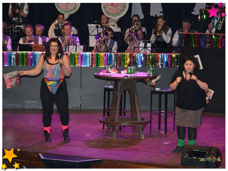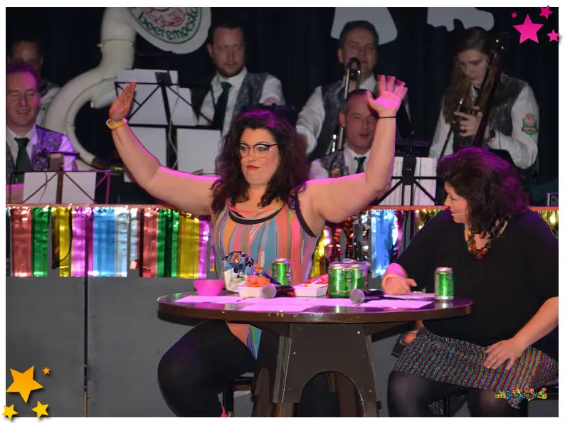 Het damesduo ‘Zwaar Geschut’ gooide alle remmen los. Met een flinke dosis zelfspot en lef sloten zij hun optreden af met de meezinger ‘Wij zijn zo lekker rond’. De zaal ging volledig mee in hun energieke afsluiter, waarmee ze bewezen dat humor in alle vormen en maten komt.