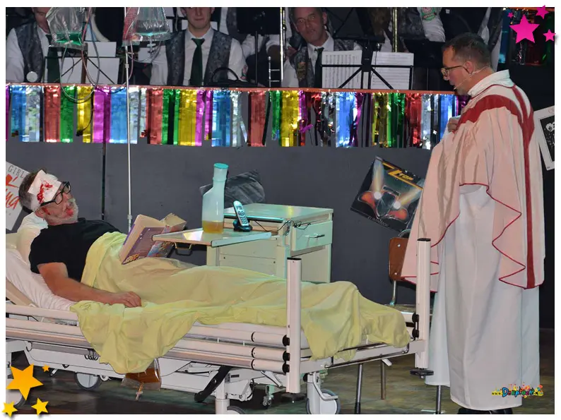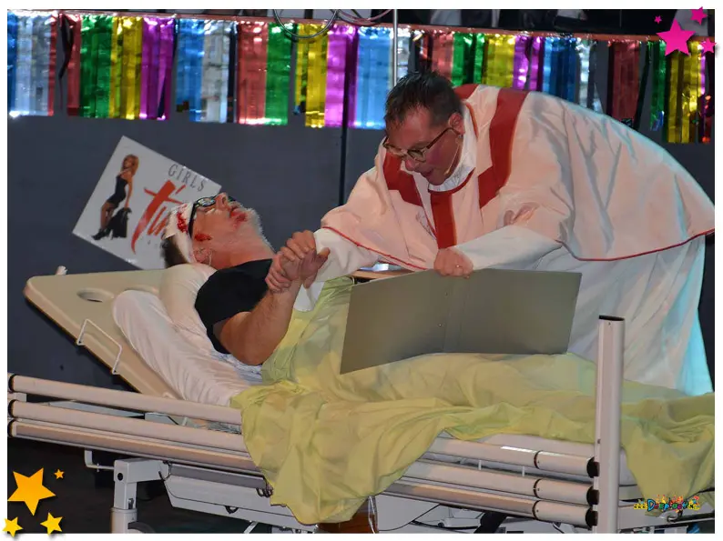 De Geweerde Marinus bracht een bijna surrealistische act waarin een wijn drinkende pastoor op theatrale wijze een patiënt in het ziekenhuis een ton afhandig maakt.