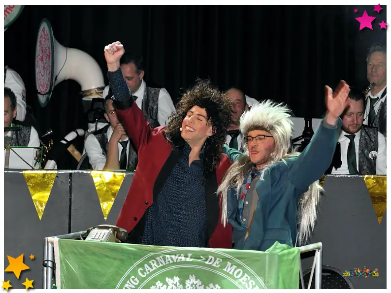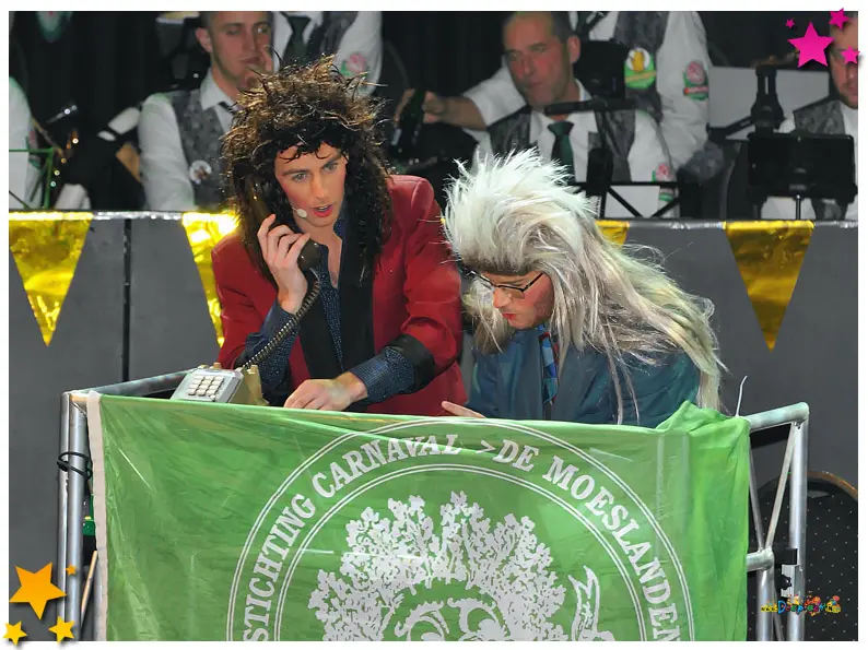 Een absoluut hoogtepunt was de act ‘Radio Moeslandia’ van debutanten Roel Wittenberg en Freek van der Venne. Met loepzuivere imitaties van onder anderen Petra Potjes en oud-wethouder Peter Raaijmakers brachten zij een satirisch hoorspel dat perfect aansloot bij de actualiteit en de lokale gevoeligheden. Hun timing en karakterspel maakten grote indruk.