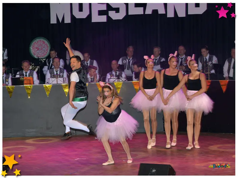 Ook het Zwijnenmeer, een geniale parodie op het klassieke Zwanenmeer, stal de show. Elf Moeszakkinnen dansten, verkleed als varkens, een voorstelling vol zelfspot en flair. De combinatie van klassieke muziek, clownerie en choreografie werkte verrassend goed en werd beloond met een ovationeel applaus.