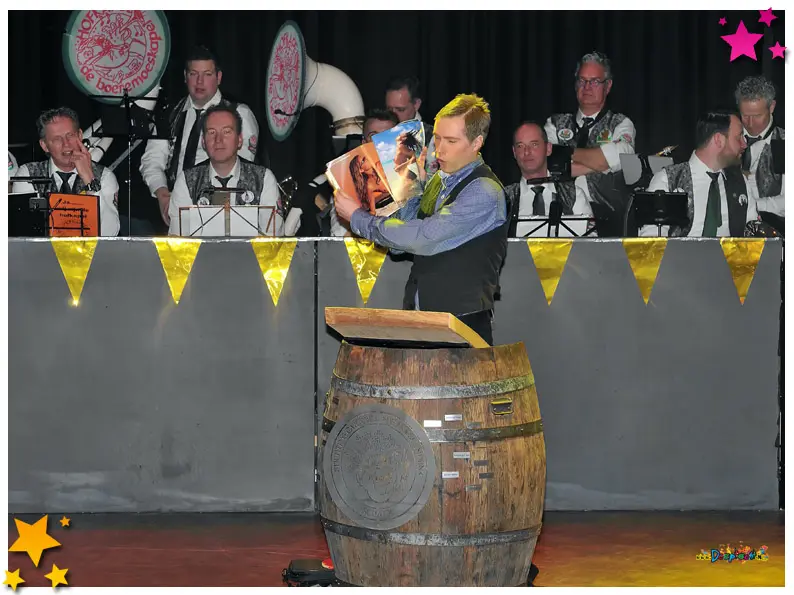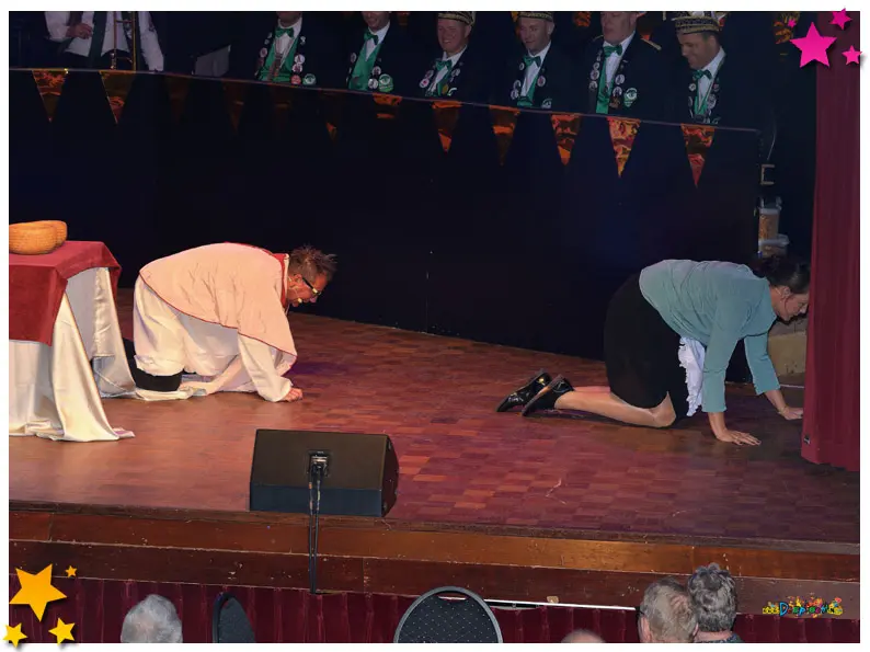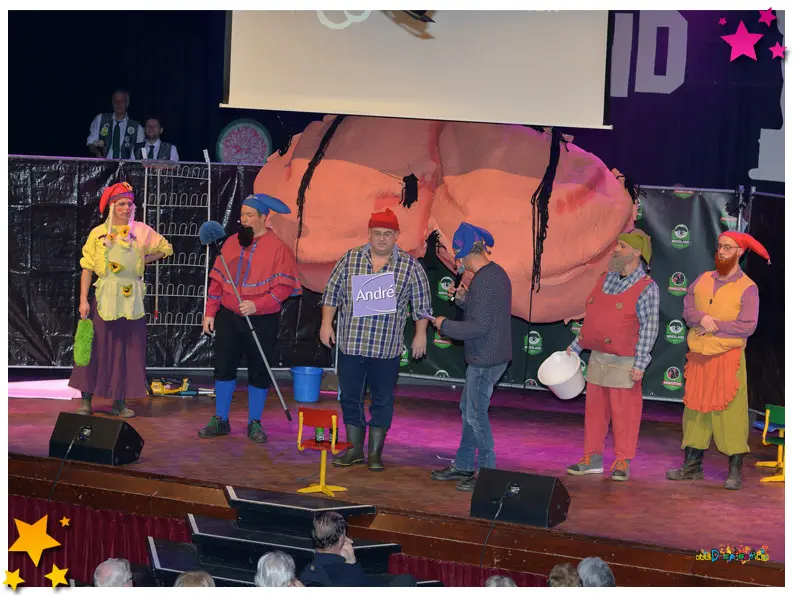 Eén van de meest besproken acts van dit jaar was zonder twijfel de ‘balzak kapper’. In een ongekend staaltje absurdistisch theater daalde een gigantische balzak neer uit het plafond, waarna vier kabouters op hilarische wijze begonnen met reinigen en ontharen. De zaal bulderde van het lachen en dit optreden gaat zonder twijfel de annalen van de pronkzitting in.