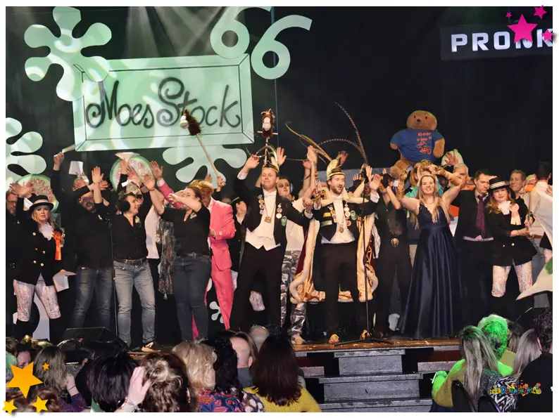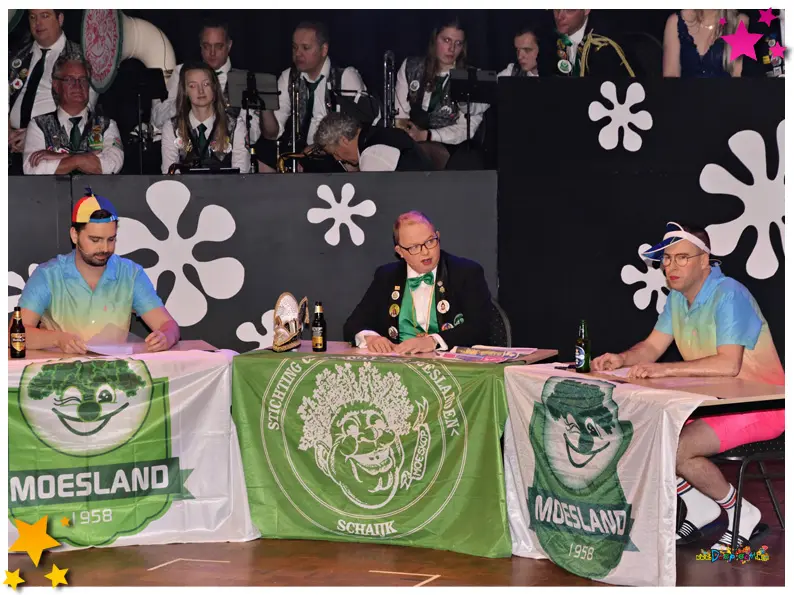 De tonpraoters pakten dit jaar stevig uit. Lokale thema’s als dorpspolitiek en herkenbare dorpsperikelen kwamen ruimschoots aan bod. Vaak met een knipoog, soms met een knal, maar altijd met de typische Moeslandse humor die de pronkzitting zo geliefd maakt.