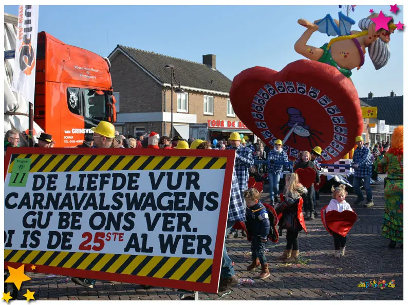 Klôre Kwats bouwde in 2015 hun 25e wagen, en dat werd gevierd met een prachtig spotje. Hun jubileumthema kreeg door de muziek extra glans en liet zien hoe trouw en bevlogen deze club al een kwart eeuw lang aan de optocht meewerkt. Een mijlpaal die zowel op straat als in het archief voortleeft.