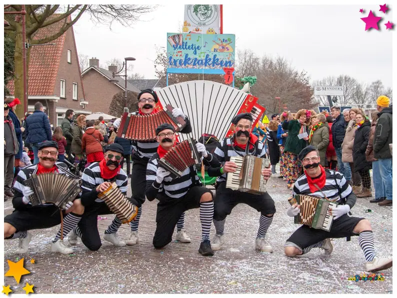 Ge Kêkt Mar heeft inmiddels een indrukwekkend trackrecord: drie deelnames, drie themamuziekjes. Dat noem je toewijding! In 2023 trokken ze door het Moesland in Oud-Hollandse sferen, compleet met een vrolijk, bijpassend deuntje. Een heerlijk nostalgische sfeeract die liet zien hoe muziek een verhaal écht tot leven brengt.