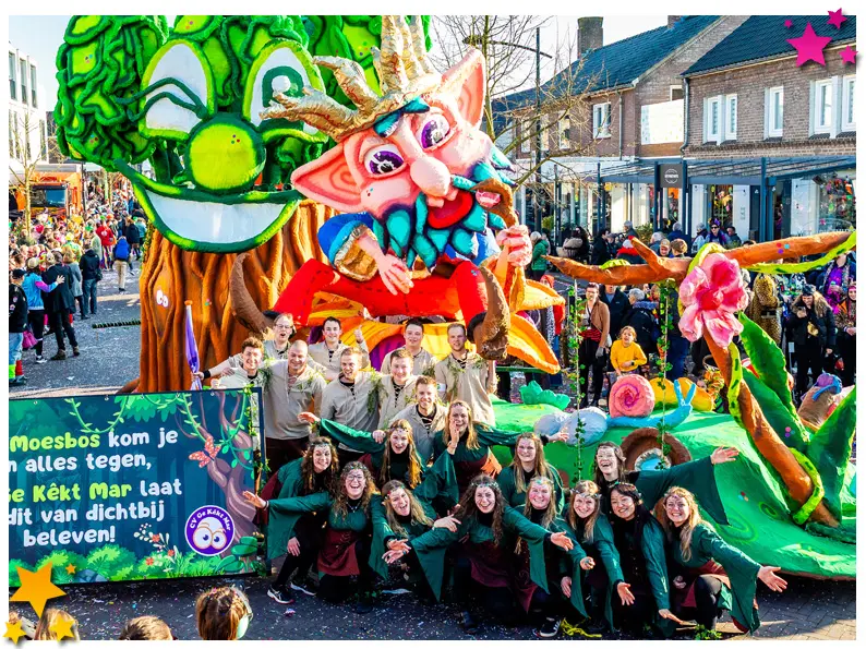 Dè Hèdde Wellus trok sportief door de straten met hun thema “Moeslands carnaval is een Olympisch carnaval.” De prachtige wagen, vol beweging en energie, werd perfect ondersteund door hun themamuziekje. Een gouden prestatie waar Moesland trots op mag zijn.