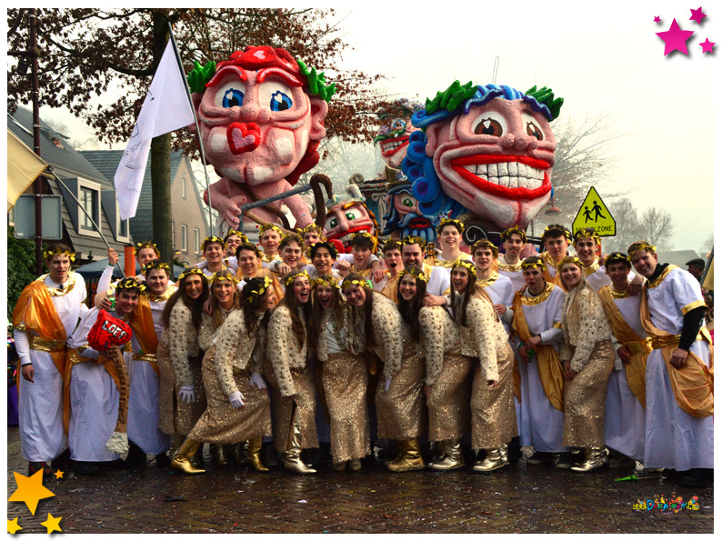 Goei Geknoei presenteerde het kleurrijke thema “De culturen van overal, vieren samen in het Moesland carnaval”. Met een indrukwekkende en rijk uitgewerkte wagen brachten zij een ode aan de diversiteit van tradities van over de hele wereld, samengebracht in één groot feest. Absolute blikvanger was de enorme draak die soepel en krachtig over de route bewoog. De bewegingen waren spectaculair en gaven de creatie een bijna levensechte uitstraling, waardoor het publiek ademloos toekeek.