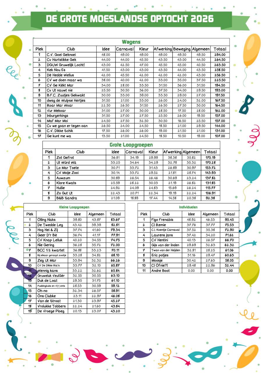 De spanning is voorbij: de jury heeft gesproken en de prijzen zijn verdeeld. De Uitslagen Optocht Schaijk 2026 laten zien hoeveel kwaliteit er dit jaar in alle categorieën zat.