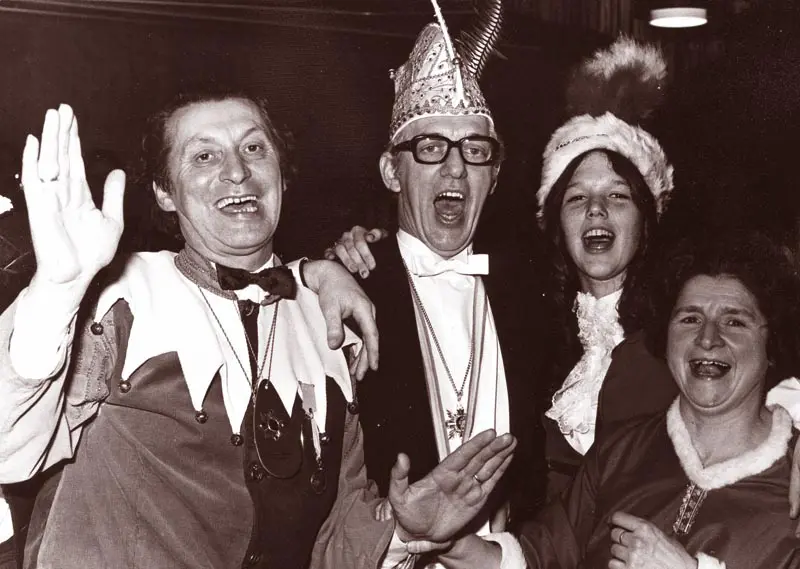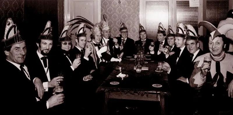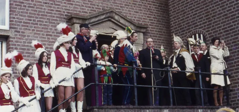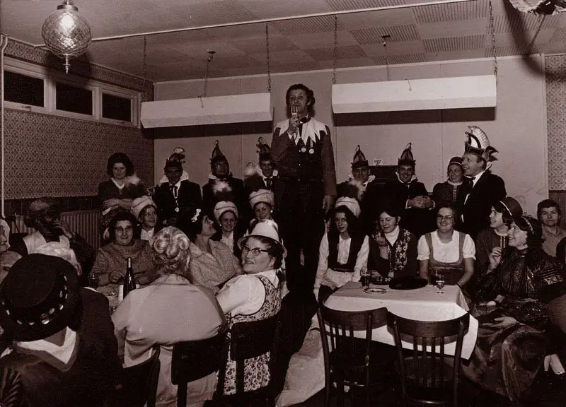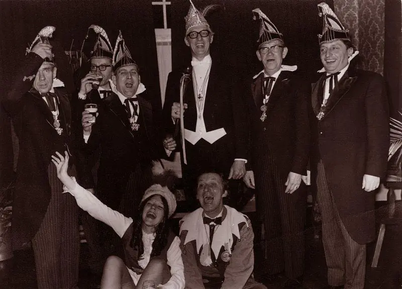 Een prachtige groepsfoto van de Prins (Prins Dolf den Uurste) en zijn gevolg uit het jaar 1970, in cafe van Dorst.
